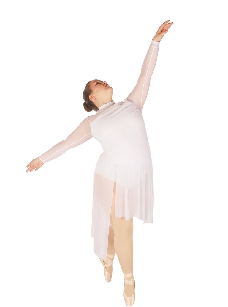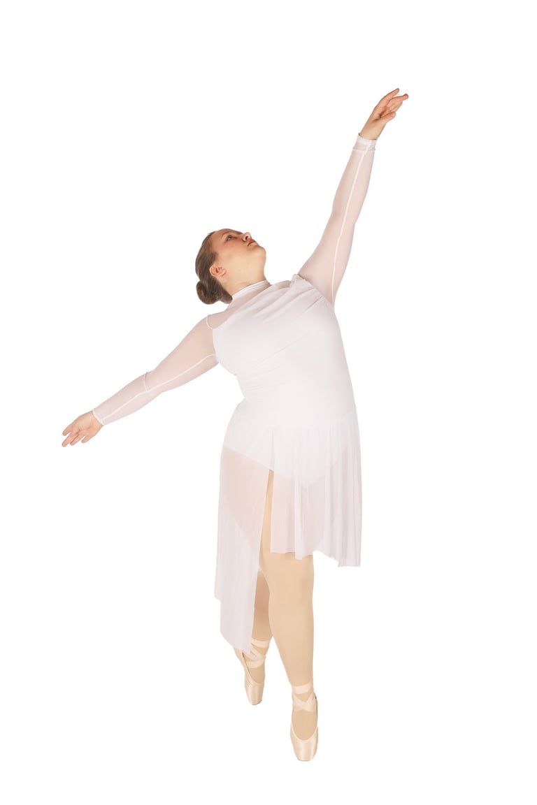 Female: Bodysuit (any color, any sleeve length), skirt, pink ballet tights and slippers without strings, long hair tied up, and pointe shoes.