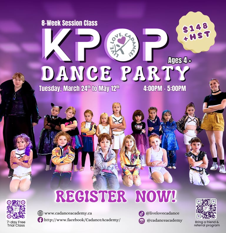 Get ready to move in our high-energy K-Pop Dance Party class! Learn iconic K-Pop choreography step by step in a fun, lively atmosphere filled with your favorite hits. Build confidence, coordination, and fitness—no experience needed, just bring your energy and love for K-Pop!