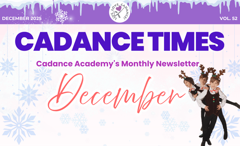 As we dance into December, the studio is glowing with festive fun, joyful energy, and the magic of the season! It’s the perfect time to celebrate our dancers, reflect on an incredible year, and enjoy all the sparkle this month brings. And with our Cadance Nutcracker just around the corner, we can’t wait to share the December cheer and all the exciting moments ahead!