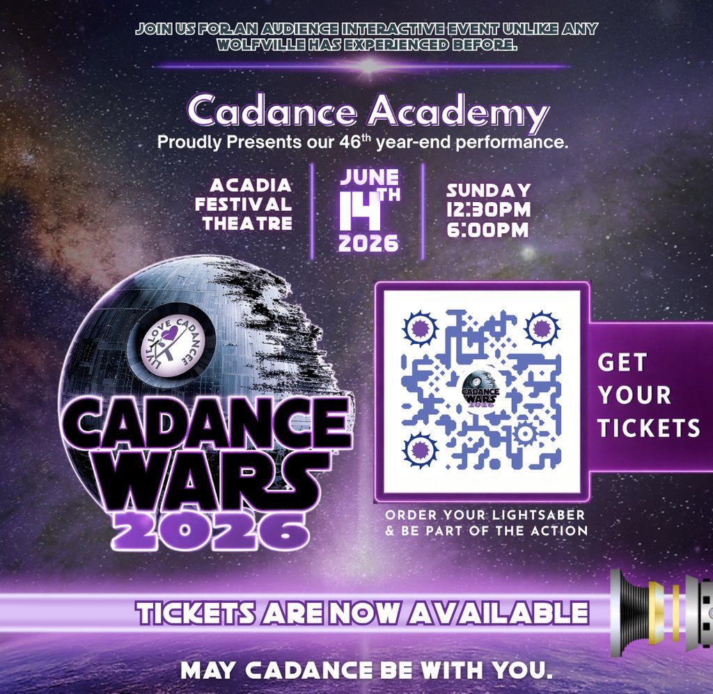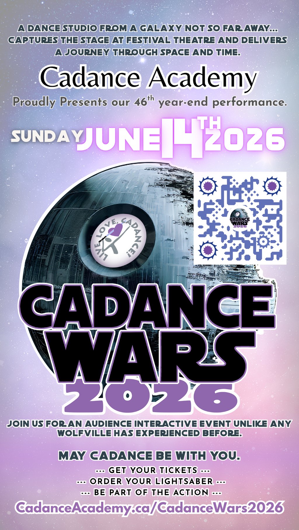 Join us for some Cadance Wars fun at the beloved annual Apple Blossom Children's Parade! Saturday May 30th. Participants will need to meet behind the Kentville Town Hall / Recreation centre at 9:00am. Audition Characters are encouraged to come in costume while all other dancers can choose between Cadance Wars Recital shirts or their costume!