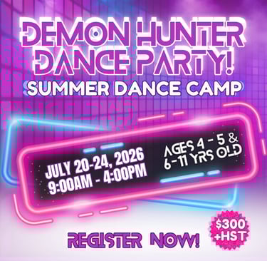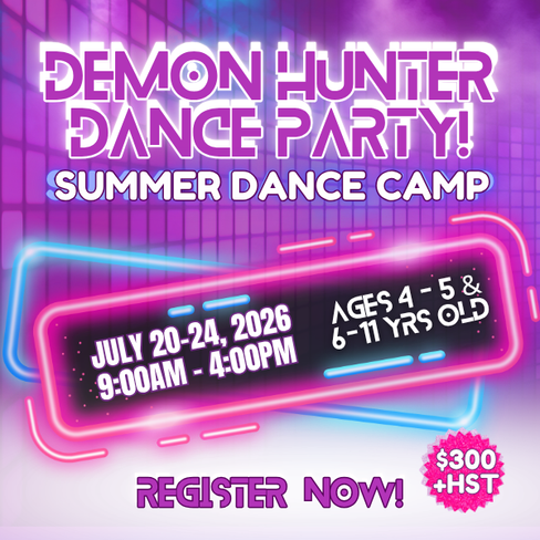Join us for an exciting K-POP Demon Hunter Dance Camp where creativity, movement, and fun come together! Campers will learn high-energy K-POP choreography, explore ballet, and enjoy creative movement while expressing their inner Demon Hunter. A fun and empowering experience for dancers who love to move and perform!
