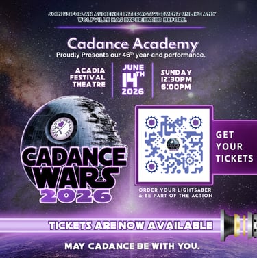 Tickets for Cadance Wars 2026 are almost here! Priority ticket sales begin on May 1 at 1:30 PM, with General Sales opening on May 4 at 1:30 PM. Get ready to secure your seats for our highly anticipated Year-End Recital.