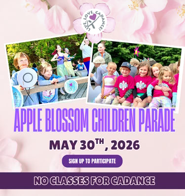 May is full of fun here at Cadance! This month’s calendar is jam-packed with exciting events. From Spirit Week and Photo Week to early dress rehearsal, and of course the beloved Annapolis Valley Apple Blossom Festival, there’s so much to look forward to. Don’t forget to sign up to be part of this year’s Children’s Parade, it’s going to be a blast!