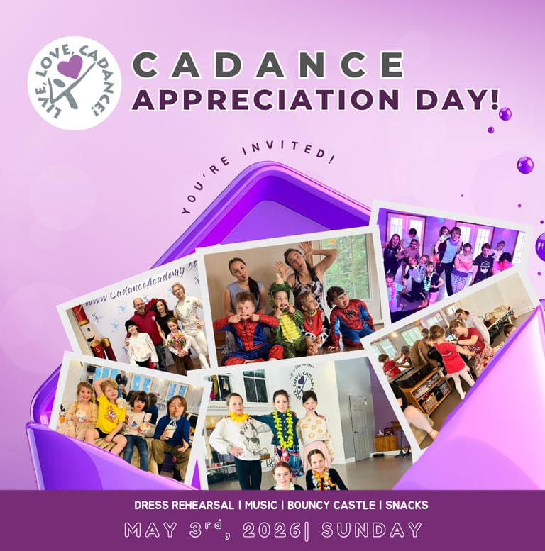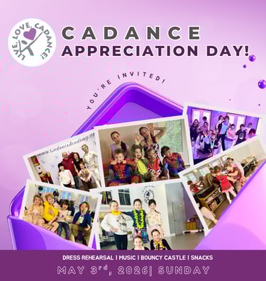 Cadance Appreciate Day! Join us for a fun-filled celebration with a bouncy castle, delicious food, and great music as we honour all Cadance dancers and their families!